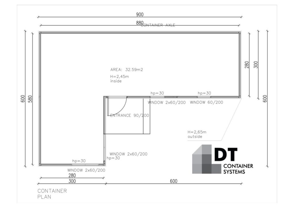 Pawilon ocieplany wykonany z płyt warstwowych styropianowych 100 mm o wymiarach 3 m x 6 m + 3 m x 6 m ( łączony w kształt litery L ) wysokość wewnątrz 2,44 m.
