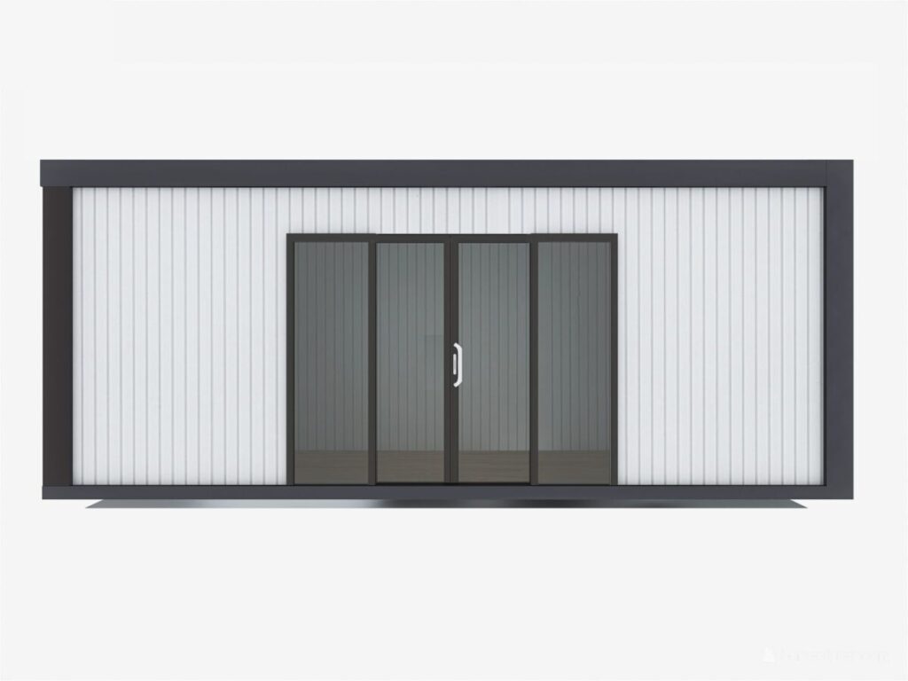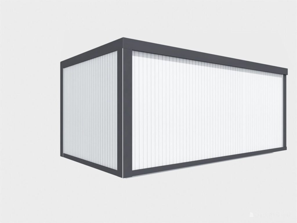 Pawilon ocieplany wykonany z płyt warstwowych styropianowych 100 mm o wymiarach 3 m x 6 m wysokość wewnątrz 2,54 m ze spadkiem na 2,44 m.