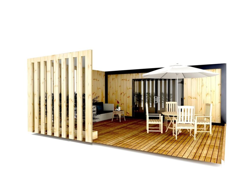 Taras i elewacja z deski lub materiału drewnopodobnego ( możliwe sugestie klienta )